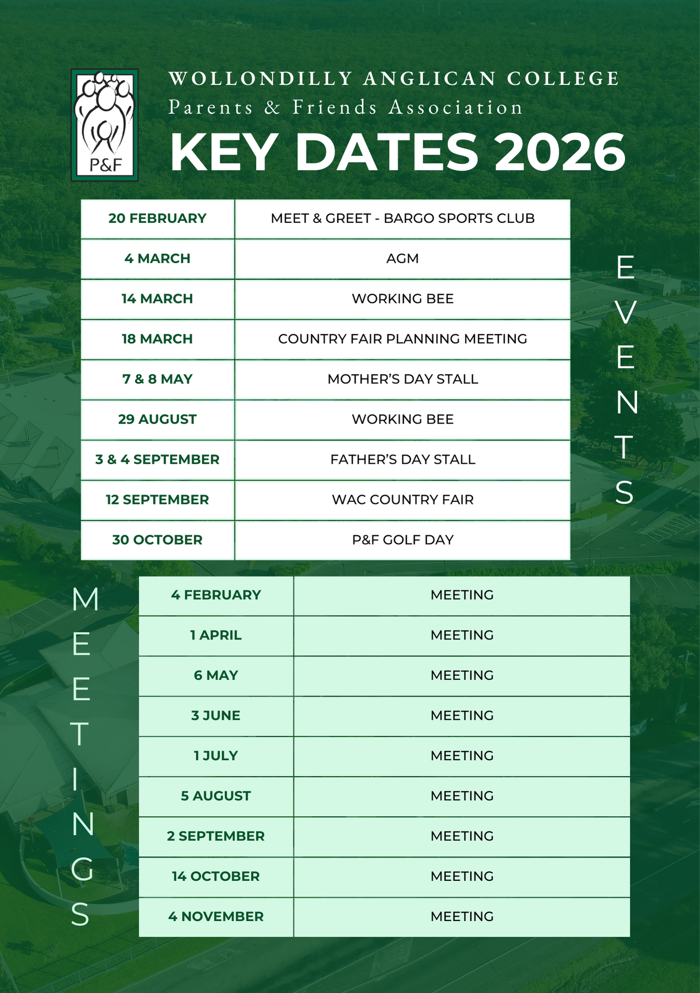 The Wollondilly Anglican College Parents’ & Friends’ Association (P&F) is seeking sponsors for our upcoming 2025 fundraising events.